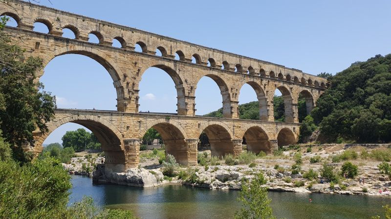 Unser erster Halt war bei Lyon, wo wir die Nacht im Hotel verbrachten und ein köstliches Abendessen serviert bekamen. Gestärkt ging es am nächsten Morgen weiter Richtung Süden zu den Ardèche-Schluchten mit einer Tiefe von 300 Metern. Da wurde es uns schon ganz schön mulmig, wenn man aus dem Busfenster in die Tiefe blickte. Das Wahrzeichen ist der Pont d’Arc, ein natürlicher Brückenbogen über den Ardèche-Fluss.