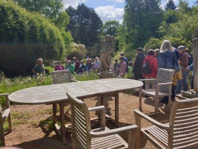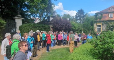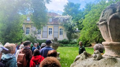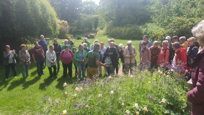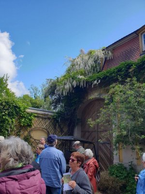 Dort wurden wir von Baron Süsskind empfangen, der sich sehr erfreut über unsere große Besuchergruppe zeigte. Er war ganz in seinem Element, als er uns - ebenso unterhaltsam wie informativ - durch seinen herrlichen Privatgarten führte. Nach dieser aufschlussreichen Führung, bei der wir neben einigen Gartentipps auch interessante Einblicke in die Geschichte der Familie von Süsskind erhielten, konnte jeder den prachtvollen Park in seinem eigenen Tempo erkunden.