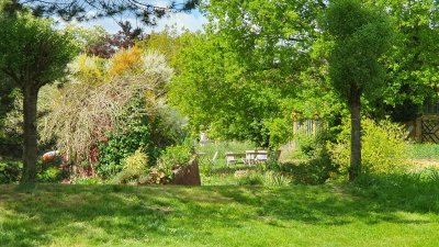 An malerisch angelegten Bachläufen entlang, ging es zu idyllisch gelegenen „Wurzelweihern“, Froschtümpeln und weiter zu den interessant gestalteten Themengärten. Auch die weitläufigen Wiesen (die „Prärie“) voller bunt blühender Wildblumen, das Moor und der exotische Himalaya-Garten haben uns begeistert.