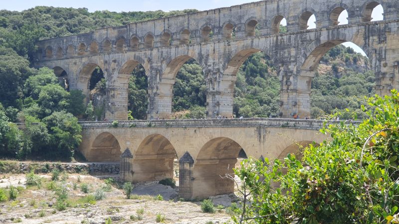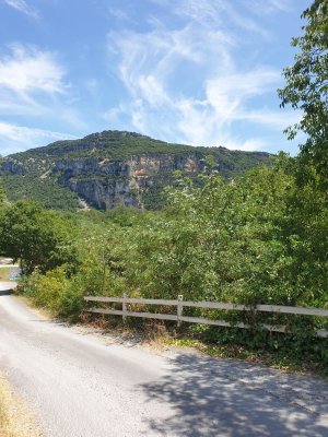 Unser erster Halt war bei Lyon, wo wir die Nacht im Hotel verbrachten und ein köstliches Abendessen serviert bekamen. Gestärkt ging es am nächsten Morgen weiter Richtung Süden zu den Ardèche-Schluchten mit einer Tiefe von 300 Metern. Da wurde es uns schon ganz schön mulmig, wenn man aus dem Busfenster in die Tiefe blickte. Das Wahrzeichen ist der Pont d’Arc, ein natürlicher Brückenbogen über den Ardèche-Fluss.